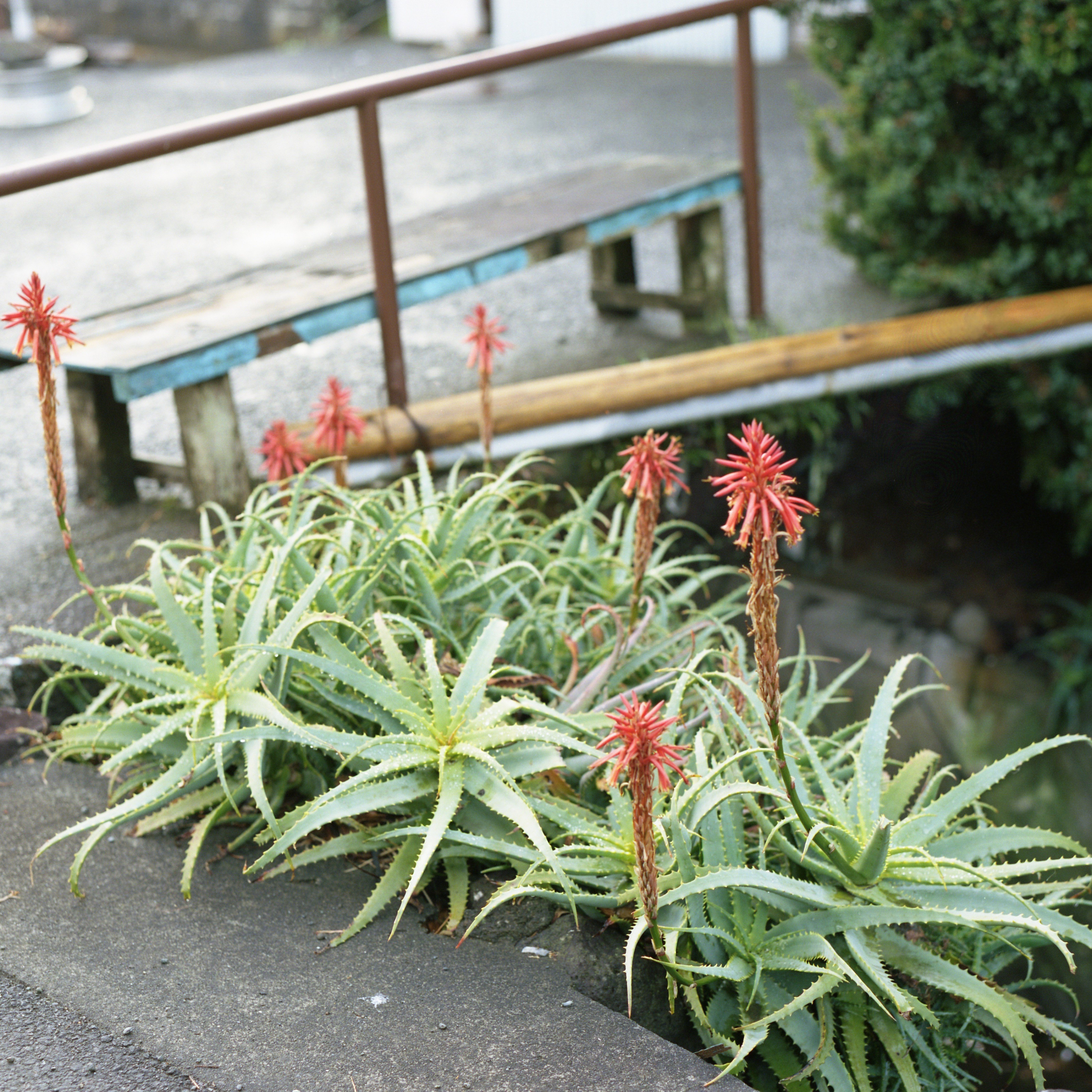 今回は海岸から住宅地へと歩きながら、生活空間に佇むアロエの姿をフィルムで撮影しました。使用したのはコダック ポートラ160NC。やわらかな発色と控えめなコントラストが特徴で、強い色を誇張するのではなく、光や空気感を穏やかに写し取ってくれるフィルムです。