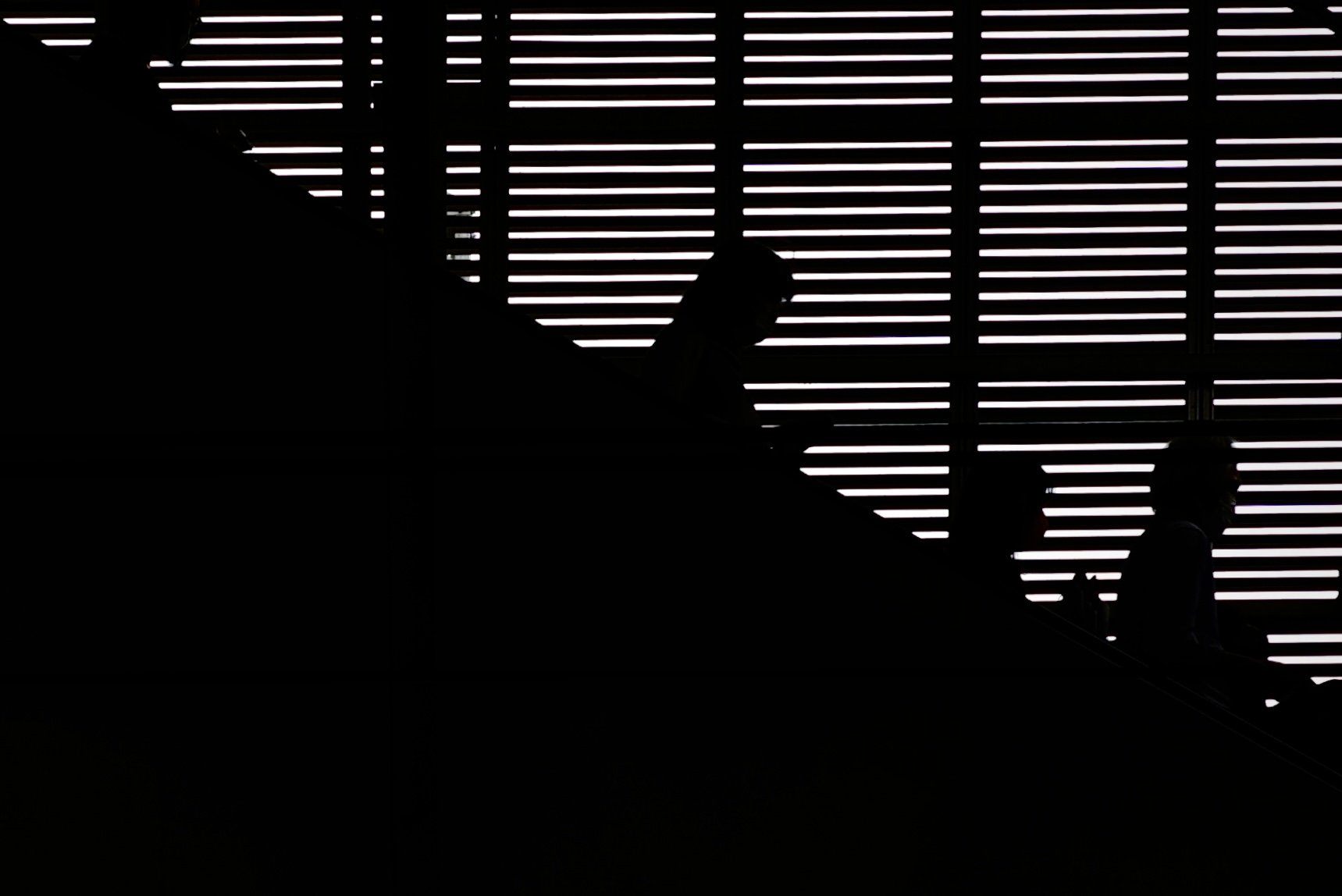 利用客の流れが緩やかに変わり、構内に差し込む光が鉄骨に遮られながら床へと落ちていきます。