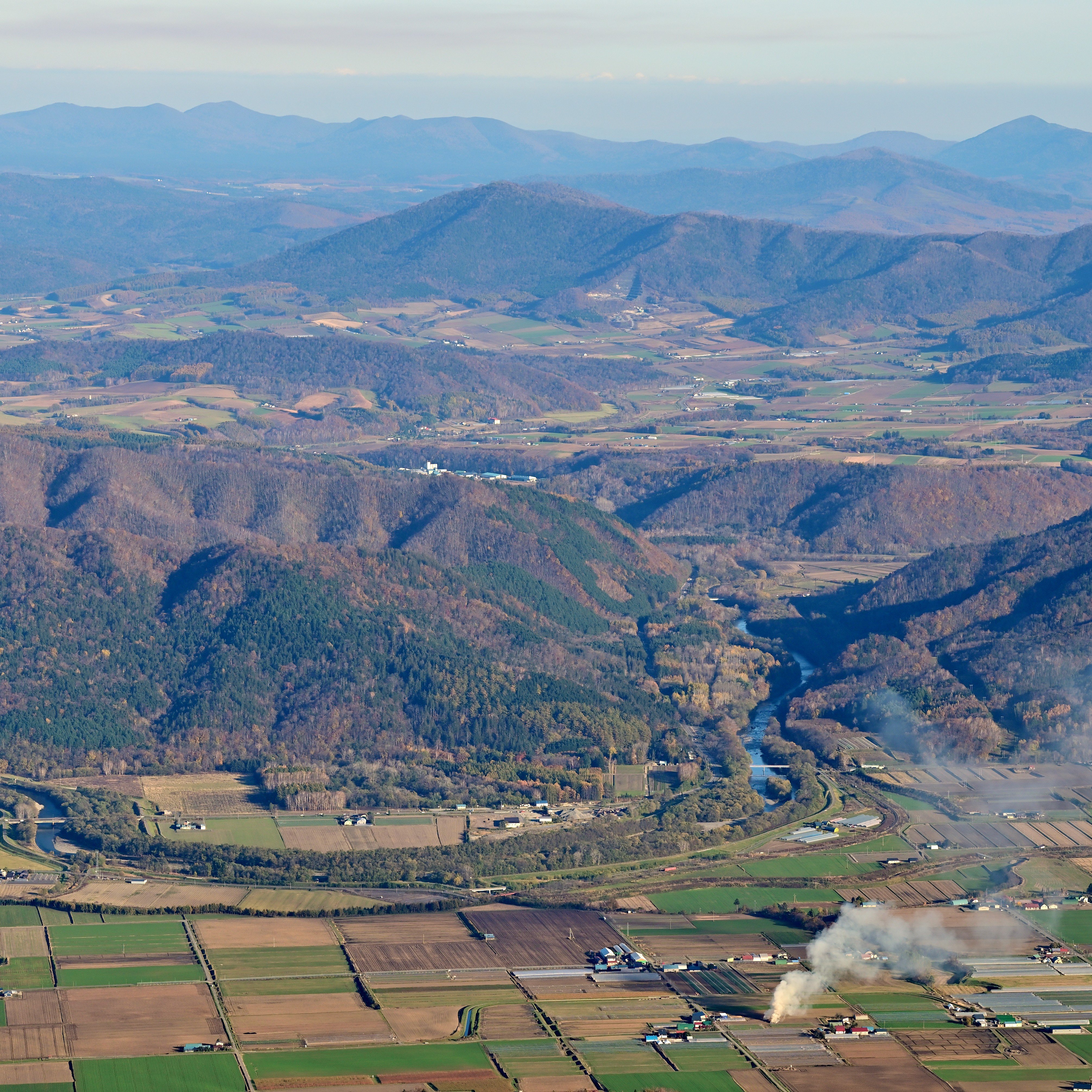 山部(やまべ)の登山口から登り始めると、約1時間半で展望台に到着します。ここからは「北の国から」の舞台として知られる布部(ぬのべ)方面の街並みを望むことができます。さらに2時間ほど登ると頂上に到着し、山部・布部の街並みや十勝岳連峰を一望できます。