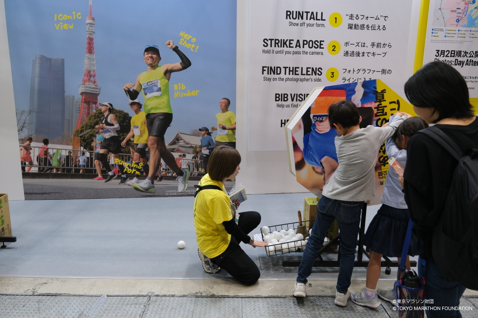 撮影体験の他にも、特賞が当選したランナーには、大会当日に撮影されたすべての写真がプレゼントされる”オールスポーツくじ”も好評を博しました。また、海外から来られたランナーや子どもたちが「カプセルトイ体験」に喜ぶシーンが多く見られました。